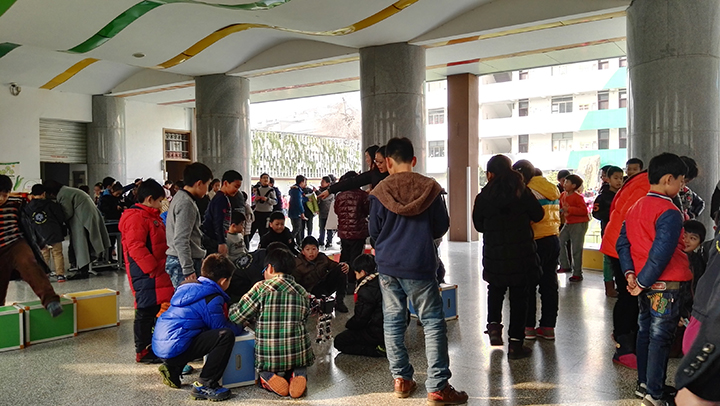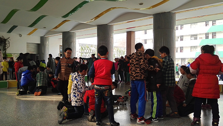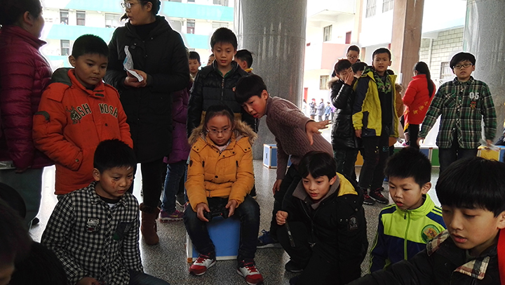 現(xiàn)場(chǎng)的秩序已經(jīng)抵不住孩子們的洪荒之力了,瞬間比賽現(xiàn)場(chǎng)由剛開(kāi)始的井然有序變成現(xiàn)在的圍坐一圈,看著孩子們興奮的樣子,不忍心破壞他們想近距離觀戰(zhàn)的心情,就這樣由著他們開(kāi)心的嗨皮吧。